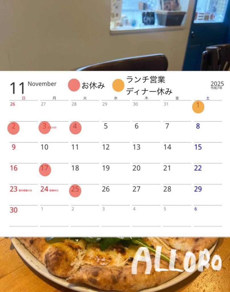 11月営業日カレンダー🗓️になります